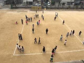 3年生と4年生がいっしょにドッジボールをして楽しくすごしました。
