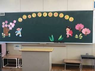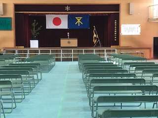 入学式に向けて講堂、教室、廊下などの準備が整いました。新しい1年生を待つばかりです。