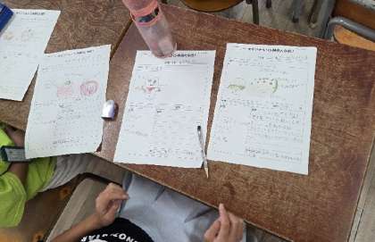 子どもたちがそれぞれにいろいろと考え、クラスの友だちと交流しながらレシピを仕上げています。