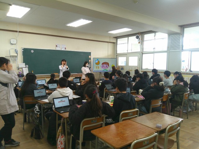 後半には、パソコンなどを使って実際の「嚙む力」を測定したり、ワークシートを使って学習したりしました。