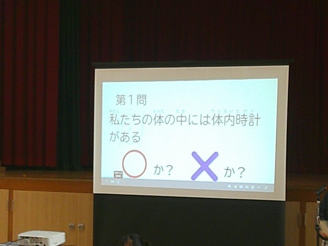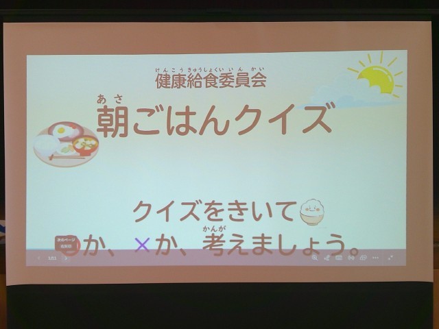 本日(木曜日)は、児童集会の日です。今日は健康食委員会のみなさんが作成してくれた「朝ごはんクイズ」です。