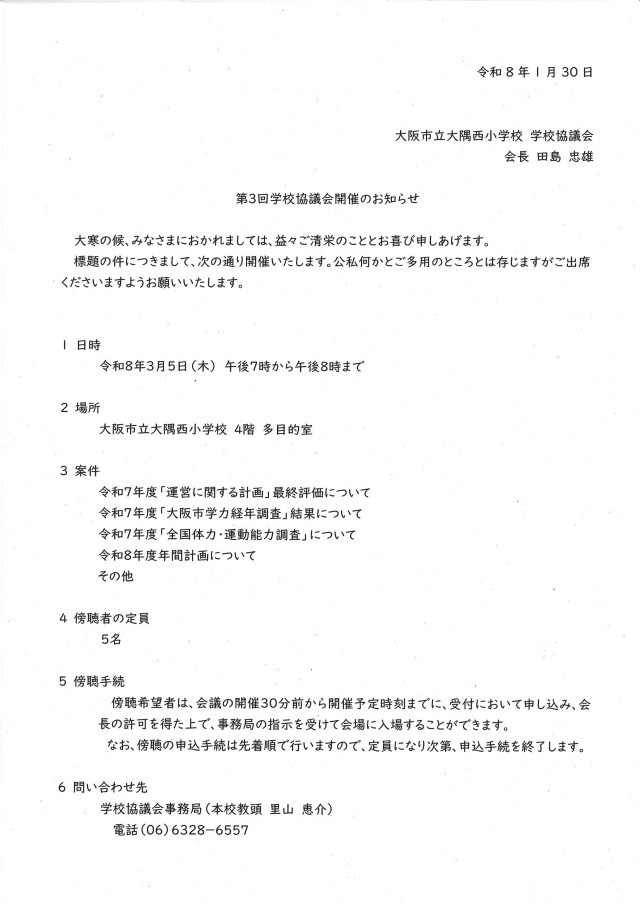 学校協議会の案内を掲載しております。傍聴希望の場合は学校までご連絡ください。