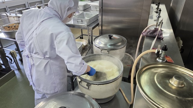 給食調理員さんたちは暑いときも寒いときも、おいしい安全な給食を作るためにいろいろな工夫をしながら調理にされていました。