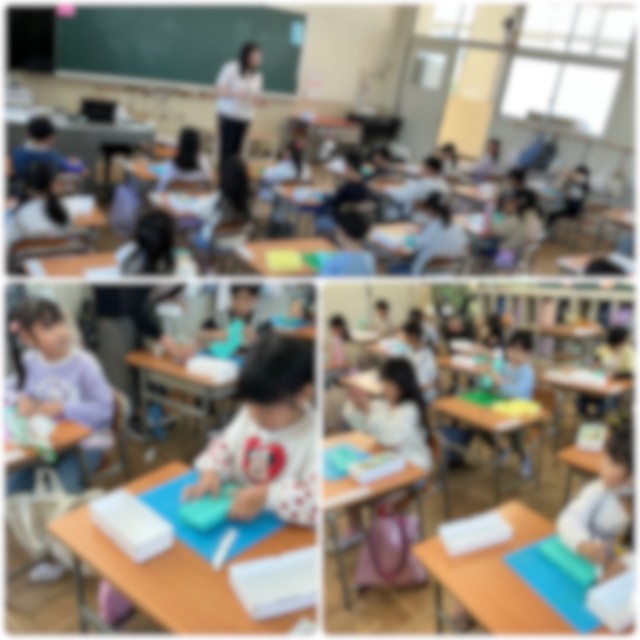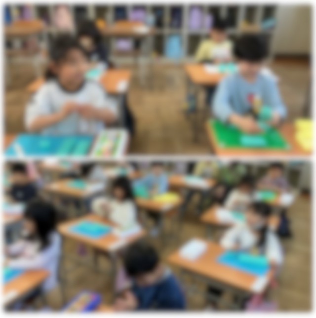 1年生は、ねんどの活動に取り組みました。ねんどを手でこねたり、のばしたり、丸めたりしながら、思い思いの形をつくっていました。手の感触を味わいながら、できた形を見せ合う姿も見られ、楽しみながら活動していました。
