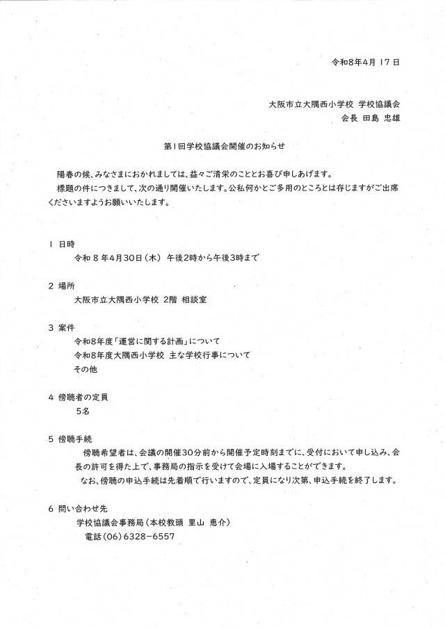 第1回学校協議会のお知らせ