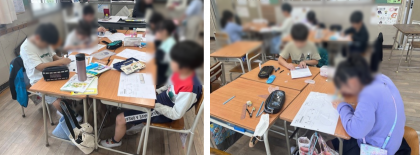 本日 4年生の教室で 算数の学び合いを 見ることができました。 カッコのついた...