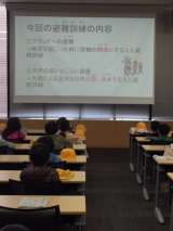 大きな地震がきたという想定で、経済大学との合同避難訓練です。学校で一時避難を終え...