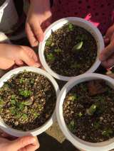 「人権の花運動」で植えたチューリップが芽を出し、生活科の時間に雑草ぬきをしました...