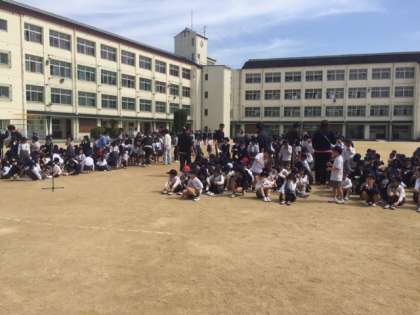 子どもたちには、あわてずに放送や先生の指示に従うように指導しました。