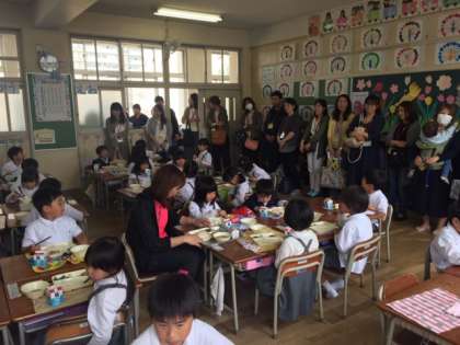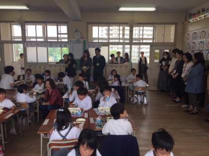 お家の方に見られながらの給食はみんな緊張気味(子どもたちだけでなく先生も緊張してます)。いつもより、お行儀よく食べています。
