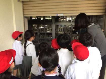 2時間目、学校探検をしました。2年生が1年生を連れて、学校の中を案内しました。校長室、事務室、給食室、図書室、図工室、理科室など、たくさんの所をまわりました。
