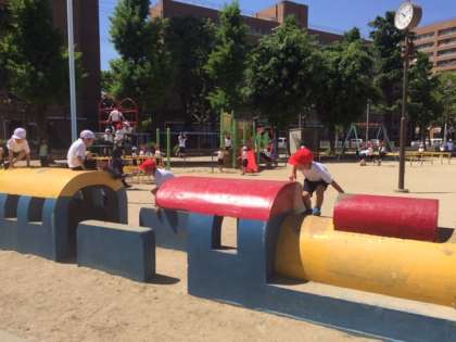 公園で、安全に楽しく遊ぶルールの勉強です。