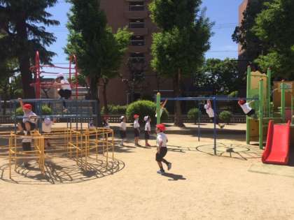 今日の午前中、1年生が「公園遊び」に出かけました。