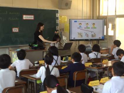 3年生から6年生まで、週に1回、ネイティブスピーカーの先生をお迎えして、英語の学習をしています。