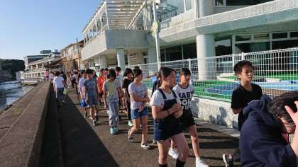 朝の集いの後、朝ごはんをしっかり食べてから、鳥羽水族館に向かいます。