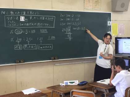5年生は算数の学習(小数の割り算)。