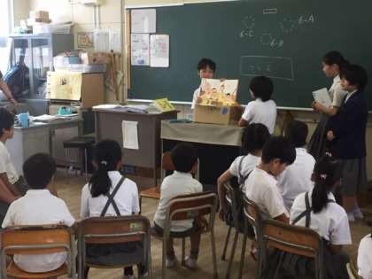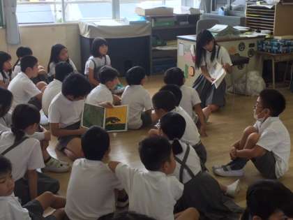 縦割り班の教室に移動して、丁寧に読み聞かせを行います。