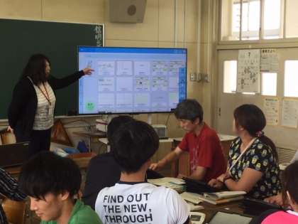 今年度ICT支援員として、ベネッセからお越しいただいている大橋先生によるタブレットを使った授業の進め方の研修会です。