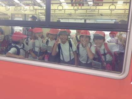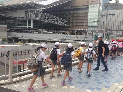 10月3日(金)全学年のトップをきって、3年生は遠足で大阪の市街地をめぐりました。はじめに梅田の地下街を見て回り、環状線に乗って大阪の町の様子を観察したり、新しくなった大阪駅や天神橋筋商店街を見学したりしました。お弁当は、扇町公園で食べました。天気に恵まれ、とても楽しい遠足になりました。