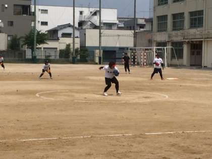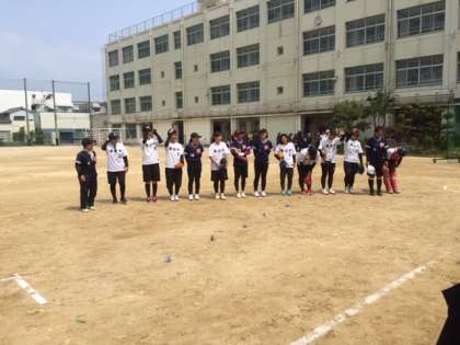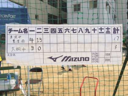 本校PTAは東淀中学校との合同チームで参加し、1回戦は21対3で大桐中学校に勝ちました。