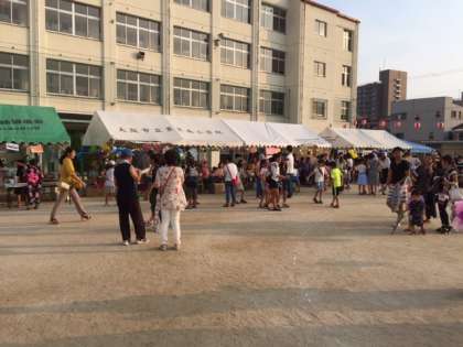 今日と明日、16時から本校の運動場でサマーフェスティバルぎ行われています。