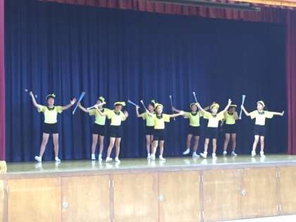カラフルな衣装を身まとい、可愛い演技を見せていただきました。