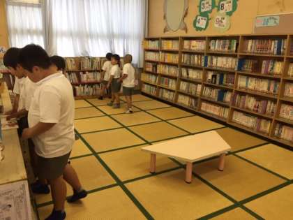 ところで、雨の日は図書室に人気が集まります。思い思いの本を読んだり、貸し出しをしたり。いっぱい本に親しんでね!