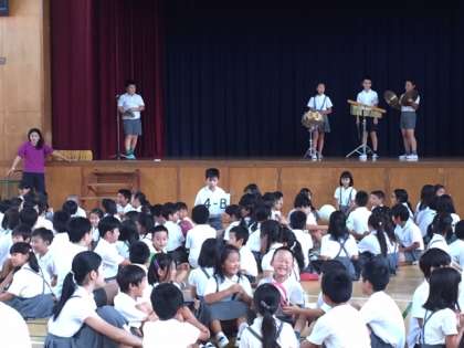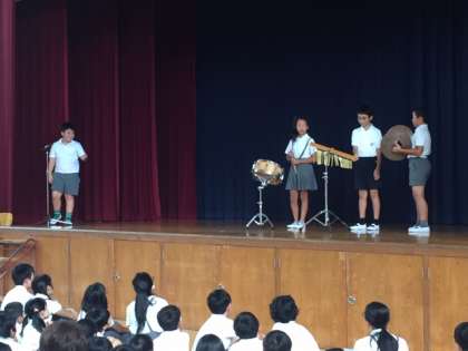 楽器に合わせてボールを回し、シンバルが鳴った時にボールを持っていた人がアウトというゲームです。