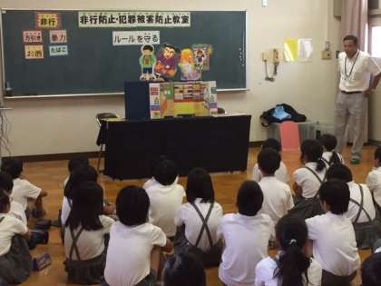内容は人形劇による万引きの罪深さ、お芝居を交えながらの断わる勇気の大切さについてです。