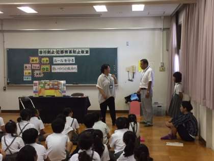 今日は梅田サポートセンターから「非行防止、犯罪被害防止教室」の指導にお越しいただいています。