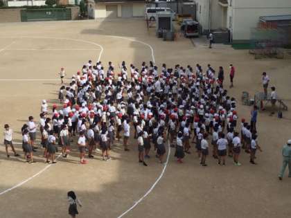 校舎の上から見ていると、みんな一所懸命に石を拾っています。
