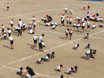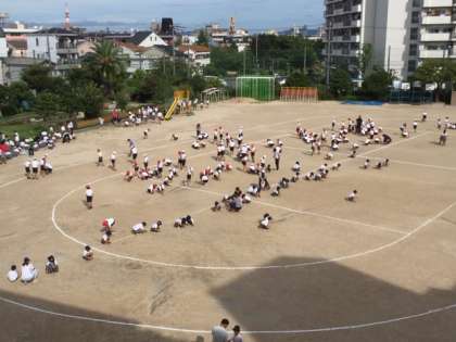 運動会を前に、運動場の石拾いと草抜きをしました。