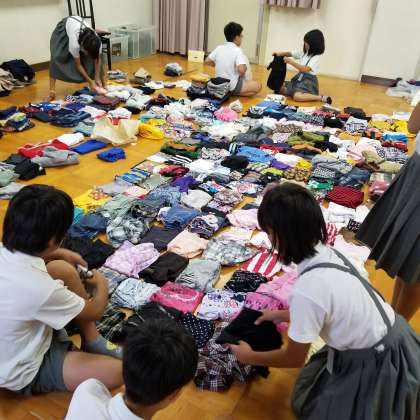 先日、5年生の子どもたちと回収させていただいた服の枚数を数えたり、段ボール詰めの作業を行ったりしました。子どもたちも、集まった服の量に驚きを隠せないようで、自分たちの活動の成果を感じることができました。ご協力いただいた皆様のおかげです。あと少し回収期間がございます。お知り合いや地域の方などにもお声を広げていただければ、ありがたいです。