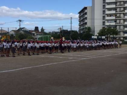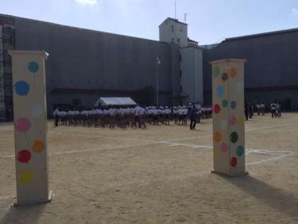 紅組・白組に分かれて運動会の歌「ゴー!ゴー!ゴー!」を歌います。かけあいながらの二部合唱です。