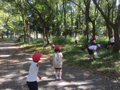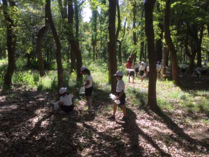 どんぐり、落ち葉、昆虫など、各自それぞれの秋を見つけます。