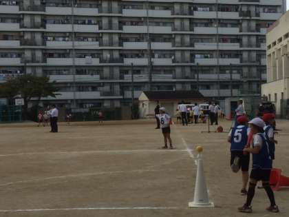 今日の研究授業は、大阪市小学校教育研究会の体育部の先生方が集まった研究授業。