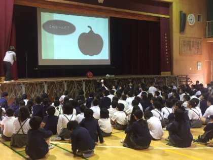 今日の児童集会は、ハロウィンに関するクイズです。