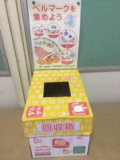 ご家庭で購入された商品でベルマークのついたものがあれば、それを切り取って回収箱に入れてください。