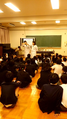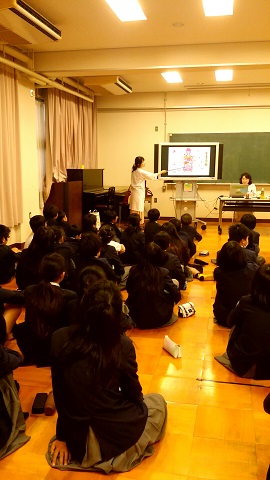 今日は薬剤師の方にきていただき、薬の正しい飲み方、薬物乱用防止について学びました。薬を水またはぬるま湯で飲むこと、薬を飲んだ後、すぐにジュースを飲まないこと、コップ1杯の水で飲む(水が足りないと喉をいためる)ことなどを教えていただきました。薬物乱用防止では、断る勇気をもつことの大切さを教えていただきました。
