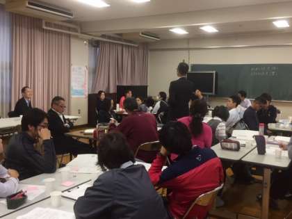 子どもたちを帰してから、先生方で研究討議です。授業の中で、ワクワクしたことモヤモヤしたことを出しあい、授業について研究しました。