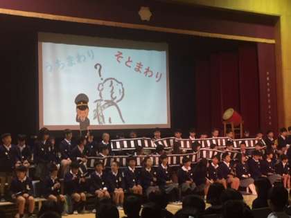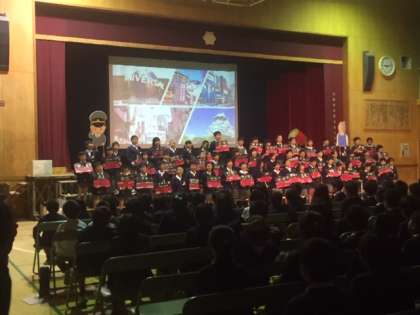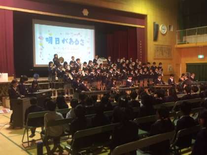 秋の遠足で回った環状線をテーマに大阪の街の紹介と「明日があるさ」の演奏を披露してくれました。