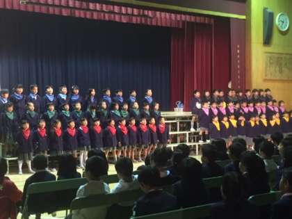 合唱(ちきゅうはみんなのものなんだ)、合奏(小さな世界)も、とても可愛かったです。