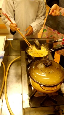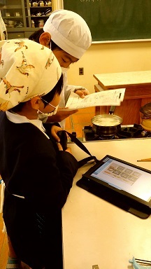 3・4限目、調理実習でみそ汁とご飯を作りました。ご飯は新潟産のコシヒカリの新米を使いました。タブレットの画面で手順を確認したり、ご飯が炊ける様子を動画で記録したりしました。班で協力して、美味しいみそ汁とご飯が出来上がりました。