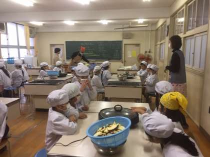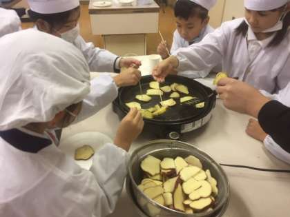 学校の畑で採れたさつまいもをホットプレートだで焼きました。