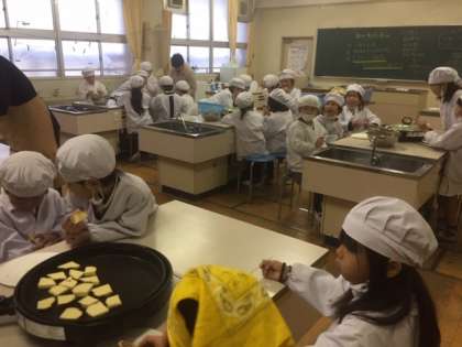 2時間目の終わり頃、家庭科室の前には甘い香りが漂ってきました。