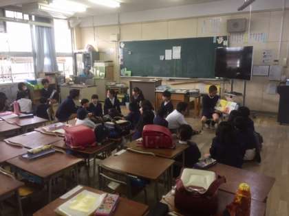 上級生のお兄さんお姉さんが、下級生に向けて絵本の読み聞かせを行いました。