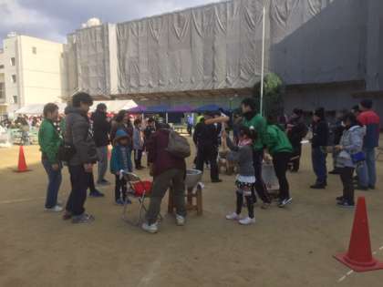 8日(日)本校運動場で、地域活動協議会主催の「第1回もちつき大会」がありました。
