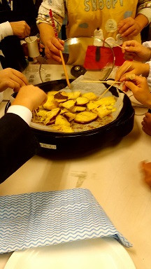 薄切りにしたお芋をホットプレートで焼いて食べました。