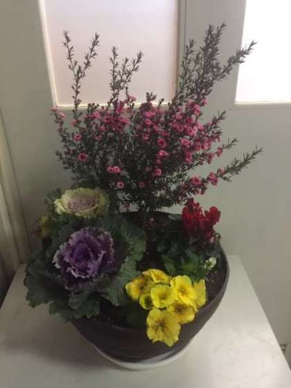 15日に行われた生涯学習ルームの「寄せ植え講座」で作った寄せ植えをいただきました。