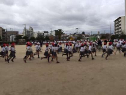 2-3時間目の間の15分休みに、先生も含めてみんなで走ります。24日の「マラソン大会」に向けて22日まで続きます。